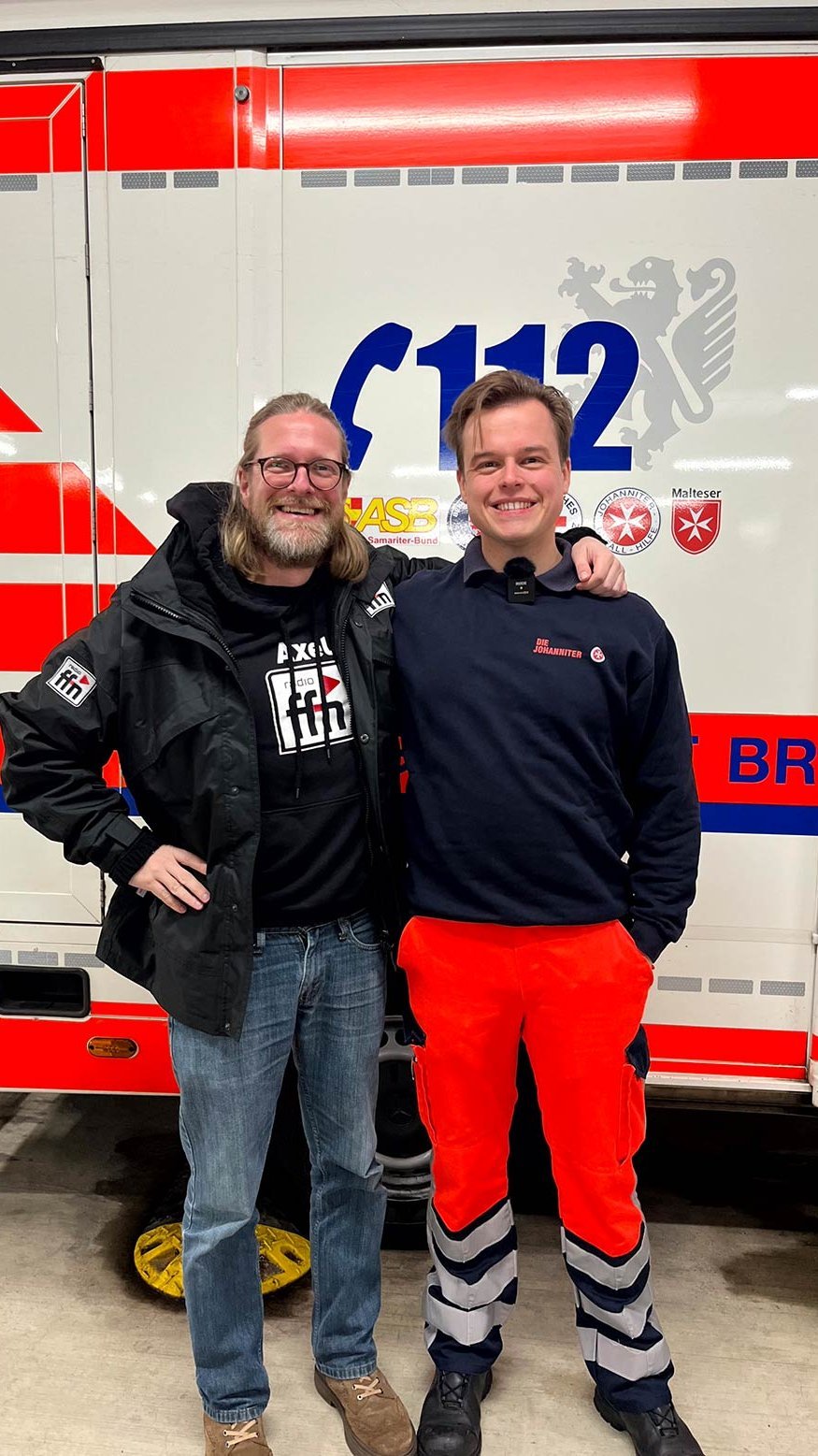 Axel war am Donnerstag zum Hausbesuch bei den Johannitern in Braunschweig. Dort hat Rettungssanitäter Jonas 1.000 Euro für einen Sitzplatz vor der Halle erspielt