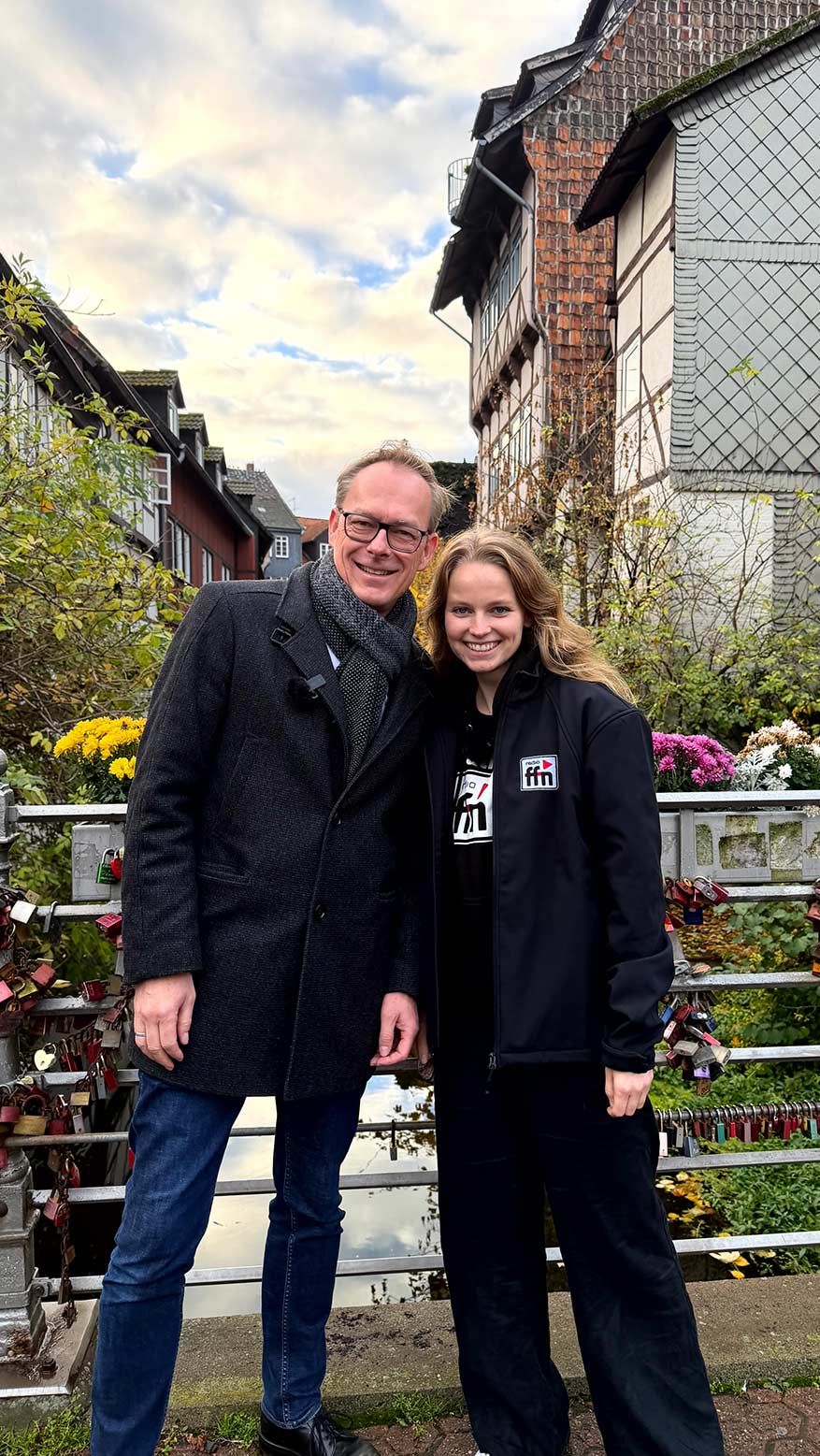 Auf der Brücke in Klein Venedig in Wolfenbüttel hat Julia mit Klaus gespielt. Die gewonnenen 300 Euro wird er den Familien zur Verfügung stellen, die durch die Hausexplosion nicht in ihre Häuser können.