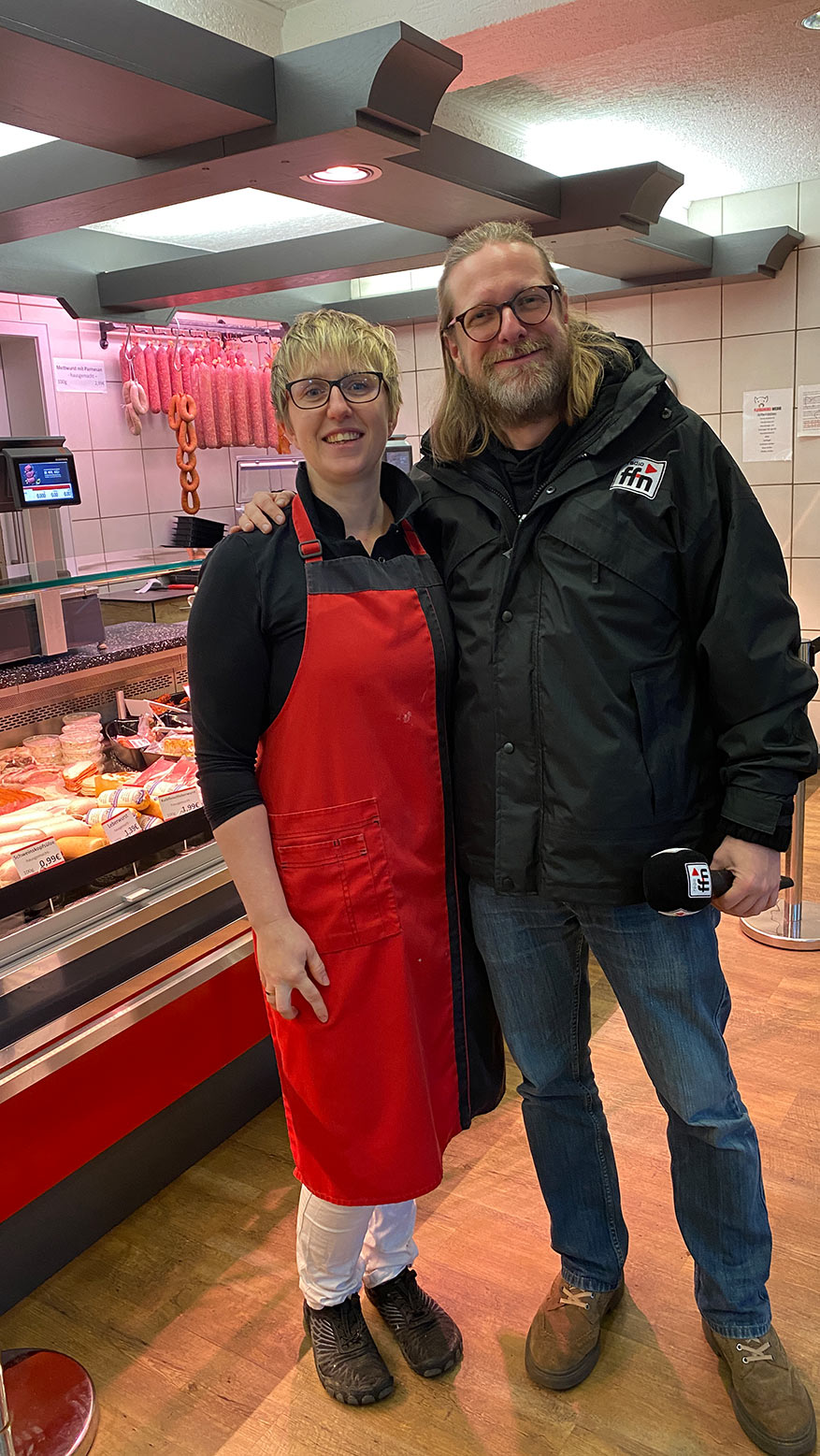 In einer Fleischerei in Harsum hat Jessica mal eben bei 5 Fragen in 30 Sekunden mit Axel 400 Euro gewonnen