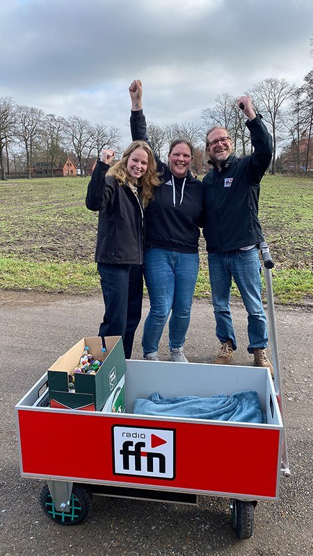Franziska aus Höfen im Landkreis Nienburg lag richtig mit Julia als Gewinnerin und hat sich unseren mega Deluxe Bollerwagen im Wert von 1400 Euro gesichert. Den haben Julia und Axel ihr dann natürlich auch persönlich vorbeigebracht. Sagen wir so: Es war etwas chaotischer als geplant wie ihr in dem Video sehen könnt.